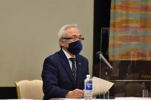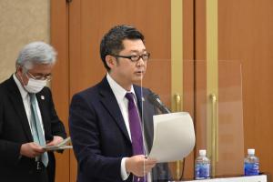 開会に当たり、 原口 剣生 副会長が「今年は特に、コロナで始まりコロナで暮れようとしている。福岡県はどうにかある程度維持をしているが、北海道、東京、大阪、そして名古屋あたりは、コロナが猛威を振るっている。このような中、先週、プロ野球のソフトバンクホークスが、日本シリーズ4回連続となる優勝をした。これは福岡県にとって大変嬉しいことで、喜ぶべきところは喜んでいかなければ、と思う。
