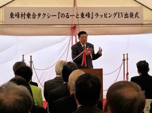 東峰村乗合タクシー「のるーと東峰」ラッピングEV車両出発式が行われました