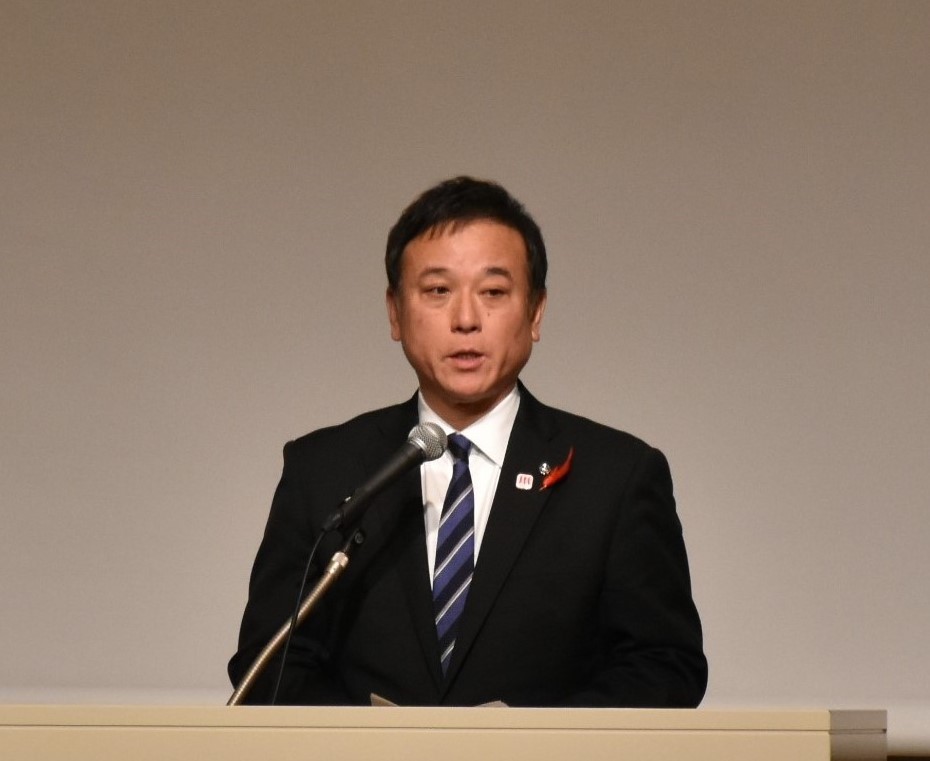 来賓を代表し、栗原 渉 福岡県議会議長からは、「8月の大雨災害を受け、九州各県議会議長会の会長として、長崎、佐賀両県議会議長と一緒に、政府に対し早期の激甚災害の指定及び被害への支援について要請を行った。11月には、九州各県議会議長会全員で政府に対する災害、防災・減災等についての要請活動を行った。引き続き、九州各県議会と連携しながら本県の総合的な防災対策をはじめ、県の振興に資する政策のさらなる充実のために積極的に取り組んでいきたい」と挨拶しました。